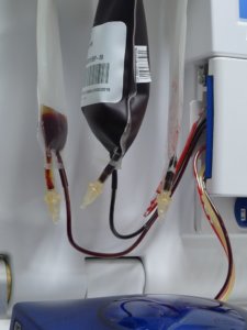 VÉRVÉTEL: A könyökvéna megszúrásával 450 ml vér levétele 5-12 perc alatt, egyszer használatos, steril vérvételi zsákrendszerbe