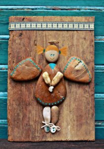 Különböző alakú, méretű, formájú kövekből készít olyan hangulatú kompozíciókat, melyek mind egy-egy történetet is hordoznak magukkal. Nem tud két egyformát alkotni. Egyszerű, egyedi képek, deszkákra kreálva. Minden egyes deszkát külön készít elő, ahogy a köveket is nagy gonddal válogatja.