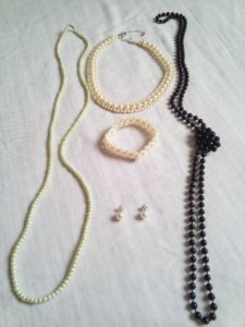 Ékszerek tekintetében bíztam anyukámban, így megkértem nézzen utána, mi van készleten. Legközelebb, amikor mentem hozzájuk, már ki is voltak készítve a csodák. Könnyekig hatódtam, ugyanis az ékszerek, gyöngyök egy része még a nagymamáimé volt, akik a ’20-as ’30-as években élték fiatalságukat (egyikőjük 1907-es, másik ’21-es születésű volt). A rögtönzött divatbemutató még apukámnak is tetszett, pedig ő igazi kritikus. Felszólítottak, hogy mindenképp küldjek fotót a komplett outfitemről.