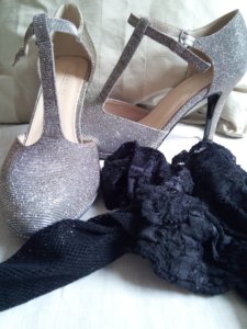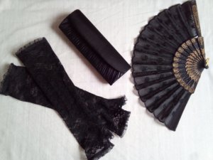 Azért jó pár üzletbe el kellett mennem, mire megtaláltam a legszebbet és legkényelmesebbet, legezüstösebbet 🙂 . Természetesen aprószemű neccharisnyával illik viselni. Még egy csipkekesztyű anyukám barátnőjétől, egy legyező, illetve a kis szatén színházi táskám (amire oly rég vártam, hogy hordhassam), és kész is volt a szett.